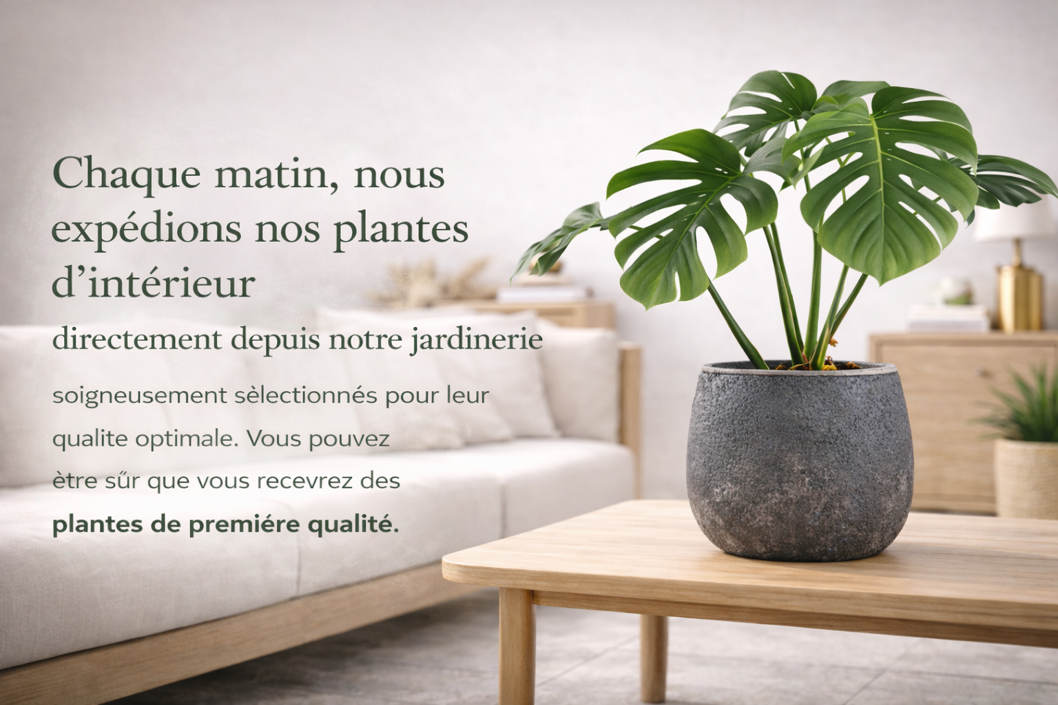 Chaque matin, nous expédions nos plantes d’intérieur directement depuis notre jardinerie, soigneusement rempotées pour leur permettre de s’épanouir pleinement. Ainsi, vous recevrez des plantes heureuses et florissantes qui ressemblent à celles que vous voyez sur la photo.